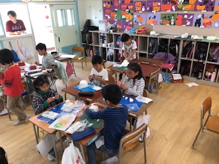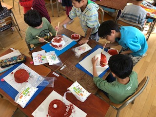 帽子の世界がどんどん広がっています!色づけもますます広がりを見せ続け、完成も近くなってきました!また工作では、ケーキづくりに入っています!思い思いの形から色づけなど、デコレーションに工夫を凝らした作品が出来上がりそうです!楽しみですね!