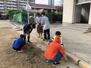 土の下はどうなっているの?子どもたちは地層の学習に入っています!映像資料から学ぶこともしますが、自分たちでどのように土の層ができるのかを体験します!ペットボトルを使って運動場の土から地層をつくります!今すぐはわかりにくいかもしれませんが、時間が経つと何かがわかってきます!どうなるか楽しみですね!