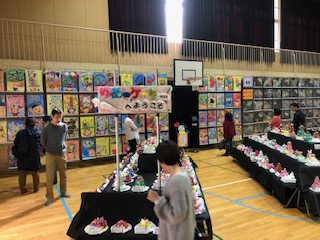 開催2日目!土曜日ということでたくさんの保護者や地域の方が子どもたちの作品と出会っています!発想が豊かやね!おもしろいね!すごいね!ステキやね!などなど、感動の嵐が巻き起こっています!まだ来られていない方は月曜日までやってます!ぜひお越しくださいね!