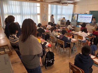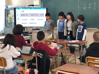 「街の幸福論」のプレゼンが始まりました!自分たちの調べてきたことを、チームで協力して、自分たちの言葉で伝えます。聞く人の心に届く、納得させる、話し方や伝える内容を練りに練ってプレゼンしました!これからの世の中は知識は人工知能が人を勝ります!学校は知識を教える時代は変容します!じゃあ、学校の役割は?それは「子どもと子どもをつなくこと」です!友だちといっしょに学びながら、自分の脳を活性化させていきます!これは1人ではできません!いろんな人といっしょにいることで、自分の考えを持ち、伝え合うことでお互いを知ることができます!子どもとこどもが、子どもと大人が、大人と大人が、ともにつなぎあうことができるのが学校です!そのためにも、みなさん!学校に来てください!そして子どもといっしょに学びましょう!学びは楽しいですよ!本日、たくさんのみなさんと学べた子どもたちは幸せでした!ありがとうございました!