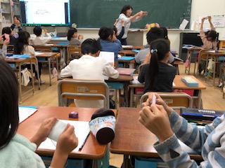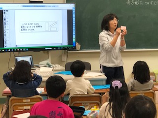 「長方形について調べよう!」の学びです!手元にある折り紙を使って、向かい合う辺の長さについて調べます!どうしたら比べられるのかを子どもたちは考えます!折って重ねる!そろえたら同じみたい!と隣の人や近くの人と学び合います!わかった人は困っている人に伝える!「人に伝える」と学習定着率は跳ね上がります!どんどん学び合いましょう!