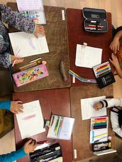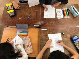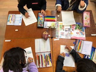 サツマイモの観察です!大小様々な形をしたサツマイモをよ〜く見て!スケッチします!どんなところが特徴あるかな?色は?形は?子どもたちはそれぞれに考えながら色鉛筆を走らせています!なぜ?と思える自分が大事ですよね!