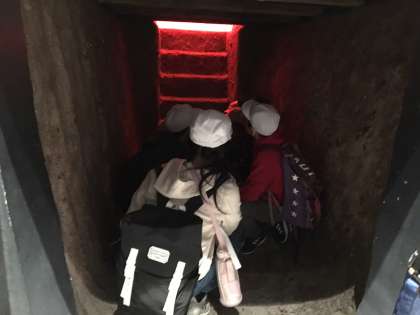防空壕ってこんな感じ!外の明かりを肌で感じながら、そのころの人々の心境に迫りました!かけがえのない命を守るために、自分ができることを考える!戦争というものそのものもさることながら、となりの人を大切にできるのか!まさに、そんな身近な人の気持ちを考えることのできる人になりたいです!