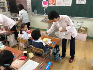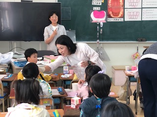 子どもたちは毎日の歯磨きが上手にできているかを学びました!歯科衛生士さんの指導の中、自分の歯の様子についてチェックします!薬をつけて、うがいをして、歯垢の姿を目で確認します!「えーこんなとこ赤くなってる!」「わたしきれいで!」「半分赤い!」などなど、びっくりする子どもたち!その後は歯ブラシで磨き残しをブラッシングします!赤い色が消えていく様子にうれしそうな子どもたちでした!