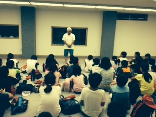 林間学習が終わりました。お世話になった宿舎の方にお礼を言ってお別れです。