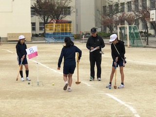 グランドゴルフ第2弾!子どもたちはボールに集中して、ピン目指してクラブを振ります!力加減がほんと難しい!わかったつもりがわかっていない!なかなかこの困難さがおもしろい!私も参加させてもらい楽しみました!地域のみなさんが優しく応援や指導をしてくれます!子どもたちもとても安心した顔でスポーツを楽しみました!ホールインワンも飛び出して、大盛り上がりです!