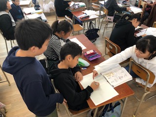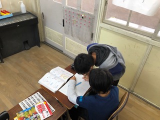 子どもたちは算数のしあげの問題にチャレンジしています!復習問題に自分のペースで学んでいきます!苦手なところはまわりの友だちと一緒に学びます!教える子どもは教えることで、学び直しをします!この力が大切!人に教えると学習定着率がお大幅に伸びます!学び合いの真骨頂です!