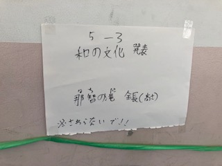 「和の文化」を調べ、伝え、学び合っている子どもたち!学びたい意欲は文化をも越えていきます!和=日本!日本の魅力って?何を伝えたい?場所!名物!と子どもたちの発想はどんどん広がります!そこで、調べたのが「那智の滝!」和歌山県にある有名な滝です!この滝のスケールの大きさを子どもたちは、なんと!すずらんテープで表現しました!発想がすごい!びっくりしました!子どもってステキですね!