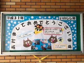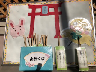 玄関にはゾロリがみんなを待ち構えています!新年を迎え、気持ちも新たにスタートしています!また、保健室前には運だめしのおみくじ!南港桜神社の鳥居の前で、今年の運勢を占いませんか?「大吉」と出るか!「凶」と出るか!でも、どちらにしてもそれを自分がどう捉えるかが大事!「大吉!やったー!ラッキー!」「凶!やった!これからはいいことしか起きない!」全ては自分次第!運気は、読んで字のごとく「運ぶ気持ち」です!「自分を大切にして、自分で考え、自分から動くことにチャレンジする!」これですよね!