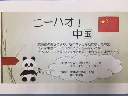 「地域とともに学ぶ 第3弾」で「ニーハオ 中国」の学びをします!保護者の方が講師として、子どもたちと学びをつくってくれます!