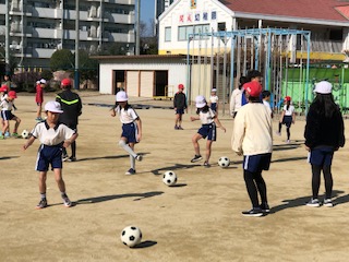 日差しが暖かくふりそそぐ運動場で、2年生と5年生の子どもたちが「学び合い」をしています。異学年でペアをつくり、お互いが相手の身になって学び合います。2年生の子どもたちの目はキラキラ輝いています!5年生の子どもたちの目はポカポカあったかい温もりを感じます!子ども同士が伝え合うことは、大人が伝える以上の効果があります。5年生は「どうしたら、優しくできるかな?」「どうしたら、うまく伝わるかな?」と相手意識を今まで以上に考えながら学びます。また2年生は「見て見て!お兄ちゃん!」「どこ蹴っても帰ってくる!」と安心して学びを楽しんでいます。いいですね!この学び!どんどん学び合って「3つの風船」をふくらませましょう!