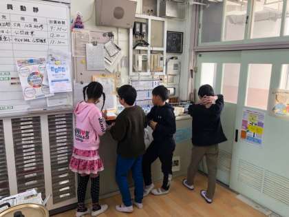 わたしたちが毎日おいしい給食が食べられるのは、給食をつくってくださる調理員さんをはじめ、給食にかかわる人たちのおかげです。牛乳屋さん、ごはん屋さん、パン屋さんなど。野菜やお肉は給食協会の人が届けてくれます。その材料で南港桜小学校では7人の調理員さんが640人分の給食をつくってくれています。給食室にはクーラーがないので、夏場は40度をこえる暑い中でつくってくれています。冬場は水がとても冷たいです。いろんな苦労の中でみんなの給食を毎日つくってくれています。感謝の気持ちを忘れないでください。