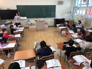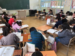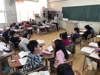 反対の言葉しらべを子どもたちはチャレンジしていました。「なあなあ〇〇の反対って何?」「〇〇ちゃうん!」「いや!〇〇やで!」と自然と子どもたちが考えを交流し合います!お互いの顔を見合いながら、お互いの声を聞き合いながら、それが自然とできるのも子ども同士が安心できる関係があるからです。さらに、机の配置にも注目!!!コの字になることでより伝え合いがしやすくなります!子どもたちの表情がとてもよかったです!学び合いって楽しいね!