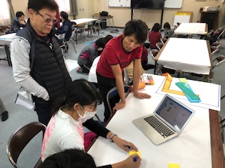 次は難関!六角形!これは難題!ここで大事なことは、みんなで考えること!ついついパソコンのにらめっこになってしまいがち!大切なことは仲間とともに、ディスカッションするとこ!仲間とああでもない!こうでもないと話し合うこと!チーム桜が進化してます!みんな考えてる!