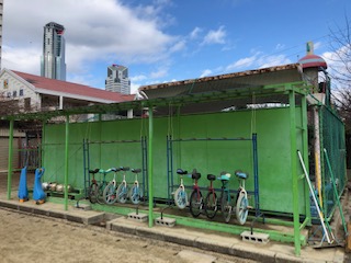 自転車に詳しいある保護者のお父さんが学校の一輪車の点検を主体的にしてくれました。13台ある一輪車は8台がどこかに支障があり、使えない状態でした。このお父さんは休日の土曜日に学校に来て、8台の修理をしてくれました。ペダルやチューブ、タイヤの修理や交換をしてくれました。すべてボランティアです!「みんながつくる みんなの学校」は「自分がつくります!」子どもが、教職員が、保護者が、地域が、みんなが主体的に動き、つくるのです!だからこそ、自分の学校が好きになり、自慢できるのです。自己を愛すること=「自尊感情を高める」こと!は、子どもにも大人にも必要な力です!