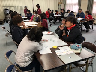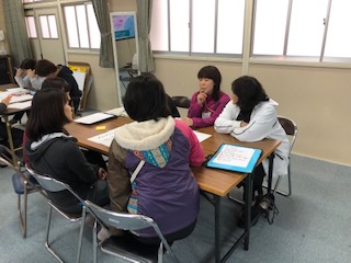 自分の考えを持ち、互いに伝え合うチーム桜のみなさん!笑顔あり、考える顔あり、悩む顔あり!様々表情でグループトークが深まっています!