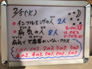 上記のような状況です!三寒四温!油断大敵です!引き続き、手洗いやうがい、よく寝てよく食べる!お願いします!