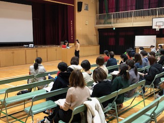 「学校は誰がつくりますか?」といきなりの質問に保護者のみなさまが困惑した表情で始まった説明会!来年度の新しい仲間を迎えるための説明会が開かれました。