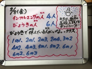 インフルエンザが少し増えました。週末3連休になります!ご家庭でも引き続き予防対策をよろしくお願いします!