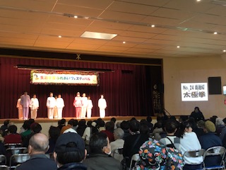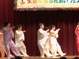 外は厳しい寒さですが、会場内は熱気で包まれています!それぞれの学校の生涯学習ルームのみなさんが日頃の成果を思う存分に発揮して、「自分が楽しむ」をモットーにステキな発表が繰り広げられています。桜小学校のトップバッターは、「太極拳!」安室奈美恵さんの、ヒーローの曲に合わせて、ゆったりと、そして優雅に!心が癒される舞台でした!指先から足先まで、神経を集中させる姿はカッコよくて、見事でした!みなさん!お疲れ様でした!
