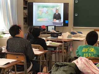 毎朝水曜日は英語タイムです!各教室では、スクリーンから流れる物語や映像を英語で聞き取り、英語に親しんでいます!少ない時間でも、毎週積み上げることが大切です!いよいよ来年からは高学年で英語が教科化されます!中学年で外国語活動が本格導入されます!私たち教職員は、これからの未来を見据えて、目の前の子どものために教育活動を前へ進めていかなければなりません!