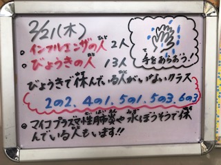 今日(2/21)のインフルエンザ速報!