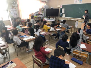 「へのへのもへじ」みたいな顔を作ろう!文字を使って顔を創造します。ひらがな、カタカナ、漢字、どれをつかってもOK!できたらみんなでシェアします!子どもたちの発想の豊かさに感動しました!子どもの可能性は無限大!