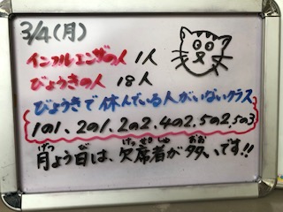 インフルエンザはあと少し!お休みの子どもは多いです。ひと雨ごとに春が近づいていますね!花粉対策も必要ですね!