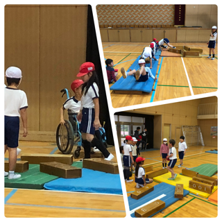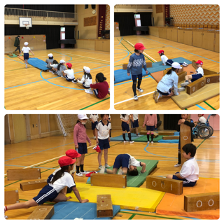 マット運動の学習です!子どもたちは自分たちで考えた組み合わせのコースをつくります。グループで話し合いながら、コースづくりします!話し合いは一筋縄ではいきません!ああでもない!こうでもない!時間がない!どうすんの!などなどみんなが頭をつき合わせて考えます!なかには、先生役の子どもが出てきて、グループに指示を出すチームもありました。それぞれが創意工夫したコースができあがるかと思いきや、すべてのグループのコースが時間内にできあがりませんでした!予定は未定!急遽授業の流れを変えます!今日のゴールを変更!コースづくりのみに授業を切り替え ました。子どもたちのコースづくりへのこだわりは強く、今目の前の子どもを見据えて授業が展開されます。まさに授業は生き物!子どもたちが自分でつくるを実践できた授業でした!