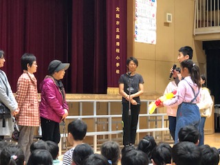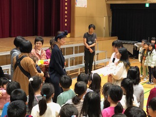 次は「ありがとうの集い」です。今年も子どもたちは、たくさんの保護者や地域のみなさんに支えられて、安心で安全な学校生活を送ることができました。今日はその感謝の気持ちを伝えました。代表委員会のみなさんが自分の言葉で自分らしく、表現することができました。さくらスマイルのみなさん!見守り隊のみなさん!読み聞かせのみなさん!から子どもたちへメッセージをもらいました。