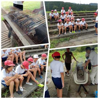 苦労してつかんだ魚は、その場で塩焼きにして食べました。ふっくらと焼き揚がった魚のおいしさは、格別でした。ちなみに今日つかんだ魚は、ニジマスだそうです。