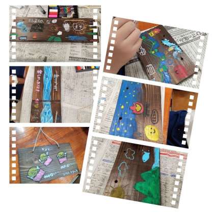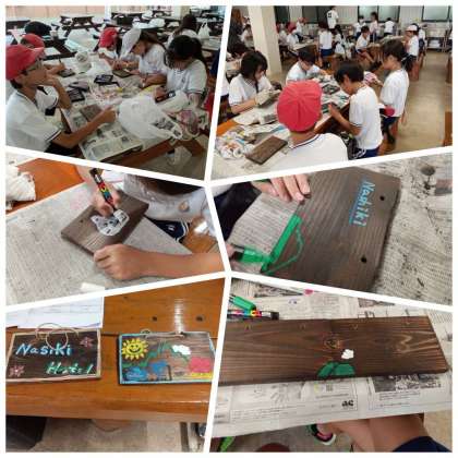 磨き終わった人から絵付けになります。ポスターカラーを使って、林間学習の思い出をカラフルに表現していました。