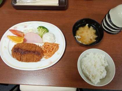 夕食のメニューはトンカツと豚汁そしてご飯にゼリーでした。