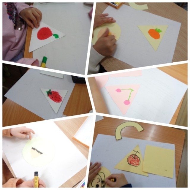 1年生の図画工作科の学習風景です。1年生は道具の使い方などの基本的な内容から学習を始めます。パスを使うときの注意点などを中心に「わたしのかばん」の作品作りに取り組んでいました。好きな果物をパスで描きながら、かばんのデザインを考えていました。