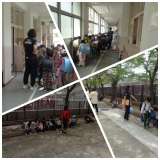 1年生の教室でも清掃活動が始まりました。先日教わったことをもとに、ほうきやぞう...