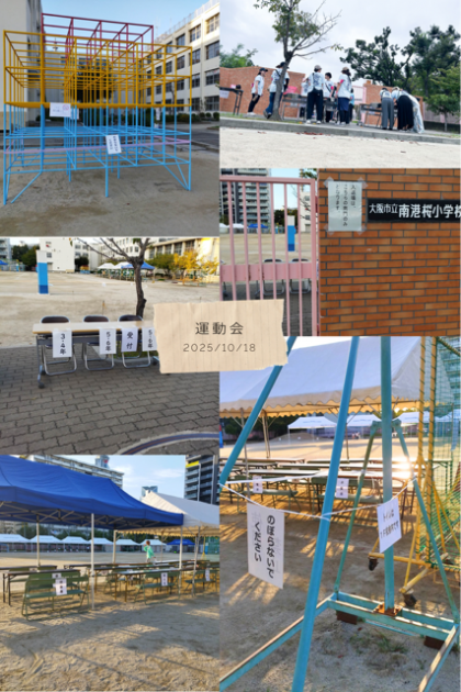 (10月6日 前日準備) 運動会当日に向け、遊具などに立ち入り禁止テープやお手洗...