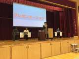 住之江区区長の西原昇さん、JICAの河合憲太さん、本校山本昌彦教諭で国際理解につ...