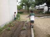 なかよし学級では、学習園でさつまいもを植えています。大きくなって収穫して食べるの...