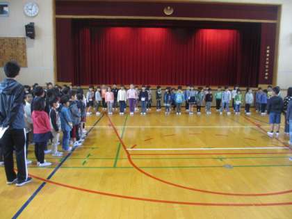 本日1限、新入生をお祝いする「入学おめでとう集会」が行われました。新1年生は全校児童と対面する初めての機会です。会場の体育館に6年生と手をつないで、花のゲートをくぐって入場しました。少し緊張気味でしたが、これからどんどん清江小学校になじんでいってほしいと思っています。