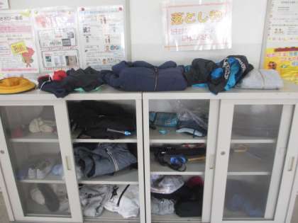 持ち主のわからない、たくさんの落し物が届いています。本日、職員室前に落し物ケースを持ってきています。もし、こどもたちが学校に持ってきていて、行方不明になっているものがありましたら、お探しいただき、ありましたらお持ち帰りください。