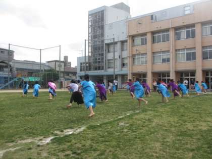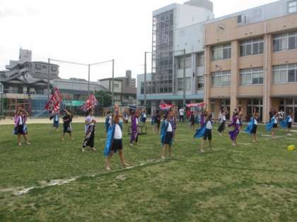 ごみリンピックの後、夕方からは子どもカフェが開催され、運動場で子ども会の昨年度の子ども文化祭で発表した演舞が披露されました。