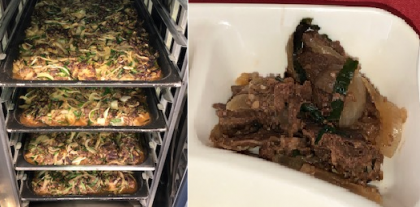 プルコギは牛肉にしょうが汁・にんにく・砂糖・こい口しょうゆ・コチジャン・ごま油・すりごま・いりごまで下味をつけさらにたまねぎ・にらをまぜあわせ焼きあげています。韓国・朝鮮料理の1つで大好評でした。