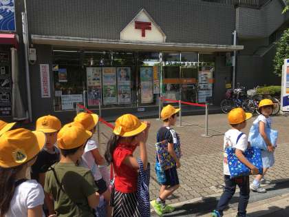 2年生は本日、生活科の学習でまちたんけんに出かけています。住んでいる町の様子や施設を学習します。