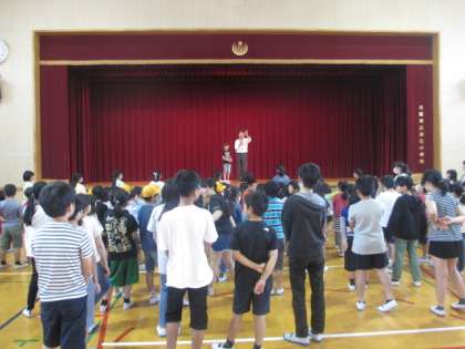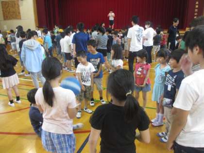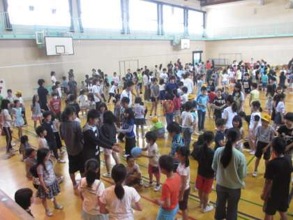 本日の児童集会では、各ふれあい班で、ボール回のゲームをしました。1年生から6年生までとっても楽しそうに参加しました。
