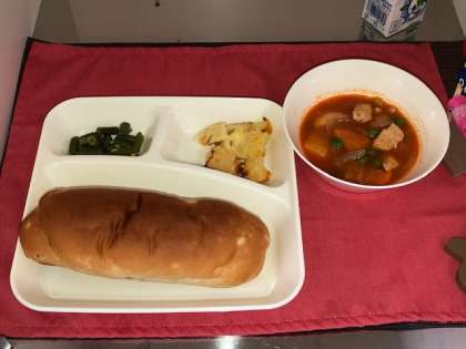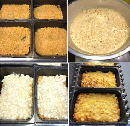 クラフティはフランスの伝統菓子で小学校ではタルト生地のかわりにコーンフレークをしきつめ、その上からりんご(カット缶)・小麦粉・砂糖・卵・クリームを混ぜ合わせた生地を流しいれ焼き上げています。好評なデサートです。