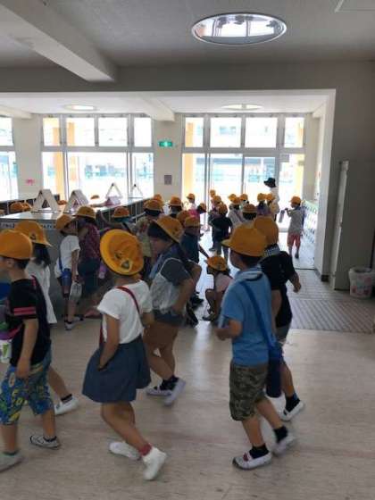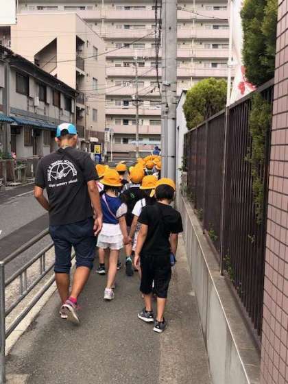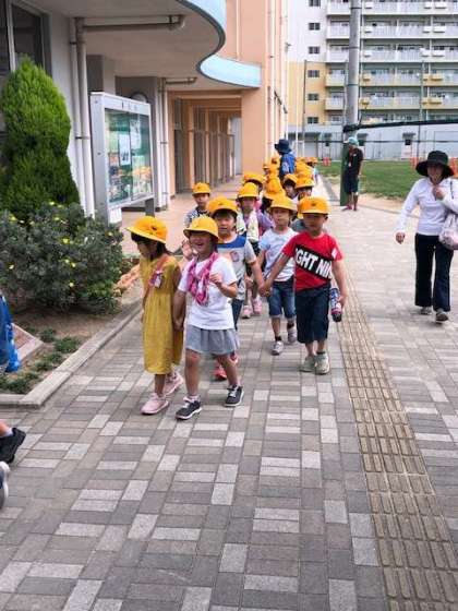 1年生は1〜2限目公園たんけんでした。きちんと整列し、横の子と手をつなぎ出発しました。
