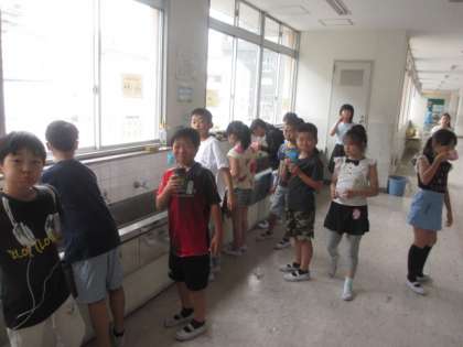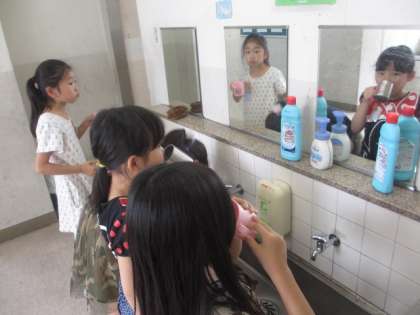今週は「ぶくぶく週間」です。清江小学校では毎日、お昼の放送で音楽を流し、それに合わせてぶくぶくうがいの習慣を身につけています。健康を維持していくうえでとっても大切な「歯」。大切にする意識を子どもにもっともっと持ってほしいと思います。