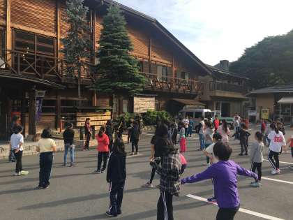 2日目の朝を迎えました。朝のつどい・ラジオ体操をして、朝食をとりました。
