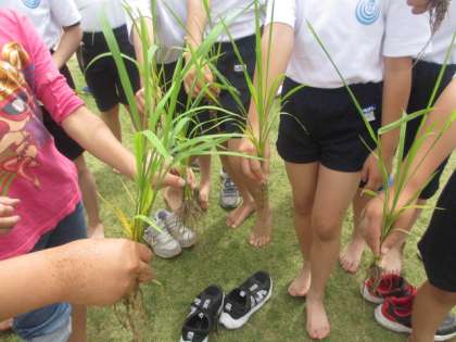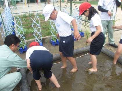 本日5年生は、はぐくみ行事で地域のみなさまにご協力をいただき、清江田で田植えを行いました。なれない泥に足を取られながらも、全員で稲を植えました。秋が楽しみです。また、稲とともにこどもたちにもしっかりと成長してほしいと思っています。