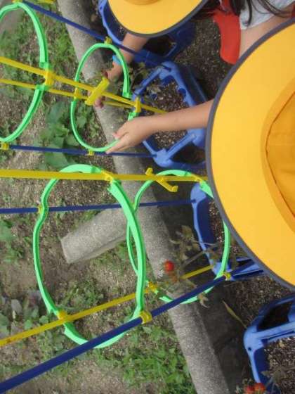 学習園では2年生が、植えたプチトマトが育ってきました。今日は倒れないように支柱を設置していました。すでに赤いプチトマトが実り始めています。もっともっと大きく育って、多くの実をつけることを期待しています。